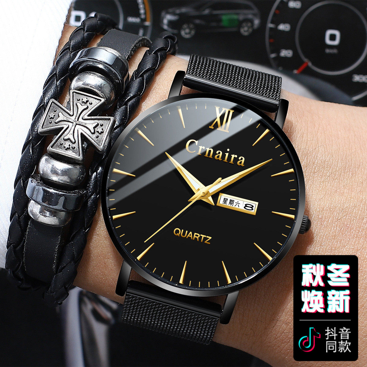 2024新款超薄简约男士手表防水时尚全自动石英表正品夜光潮流腕表