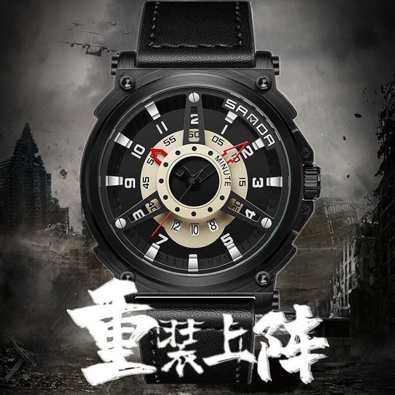 三达新款仪表摩托车手方向盘TE飞行员37男士非机械表防水钢石英表