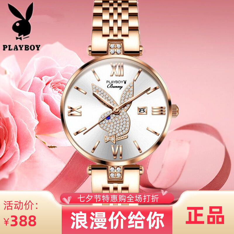 花花公子品牌正品手表2024新款多功能学生防水夜光情侣石英表学生