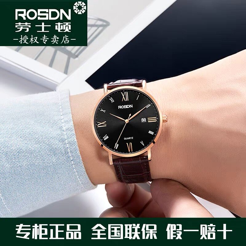 劳士顿2024新款正品腕表简约真皮男表时尚潮流手表超薄防水石英表