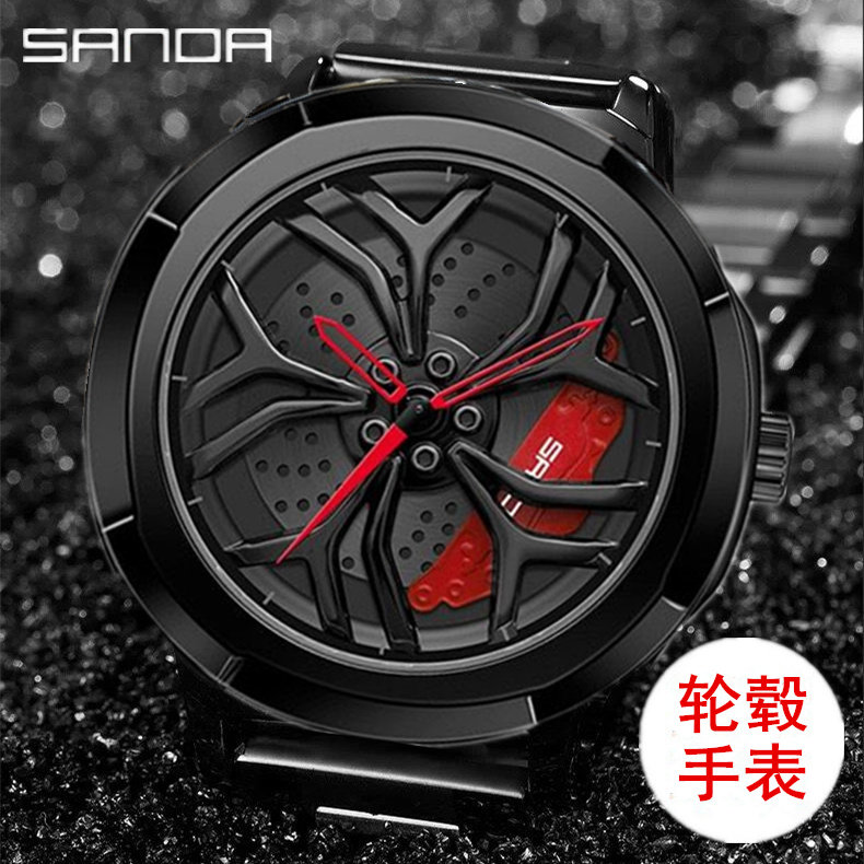TE超跑37轮毂进口立体镂空刹车卡钳汽车石英男表学生创意非机械表