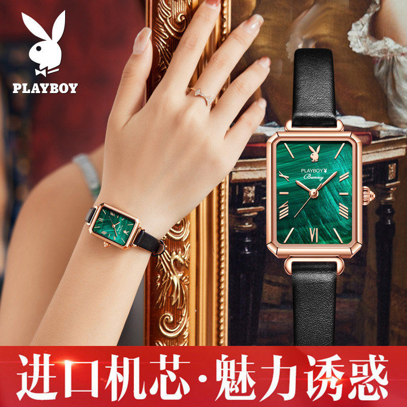 2023新款花花公子小绿表抖音方形石英表时尚防水真皮女表正品手表