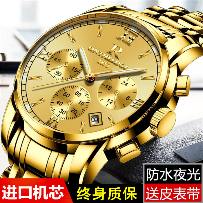 手表男士2023新款概念防水时尚潮流韩版石英表夜光全自动金色男表