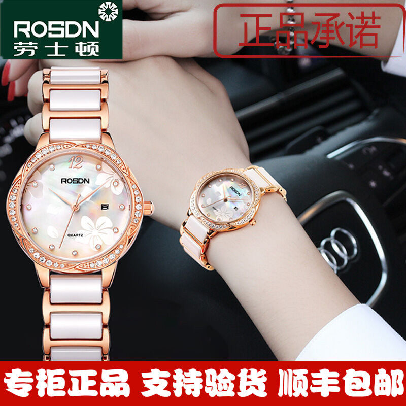 劳士顿正品超薄机械镶钻陶瓷女士手表石英表潮流时尚防水镀金腕表