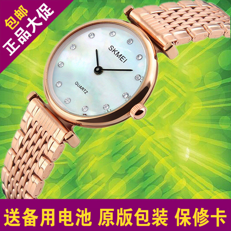时刻美新款时尚女性腕表防水钢带女表简约精致镶钻女士石英表1223