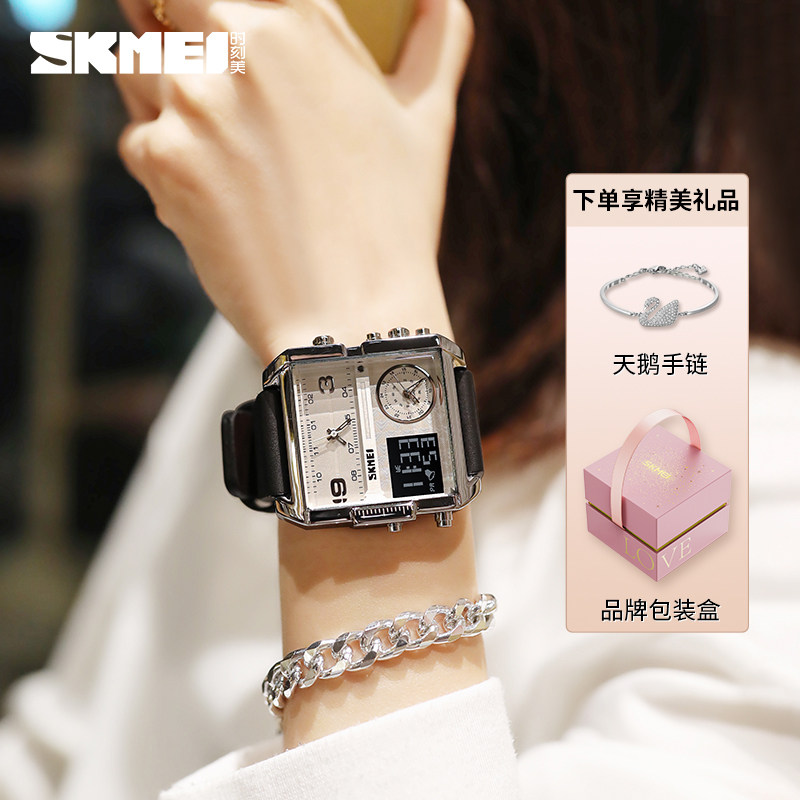 时刻美时尚商务多功能方形男士手表大表盘防水女高级感多功能石英