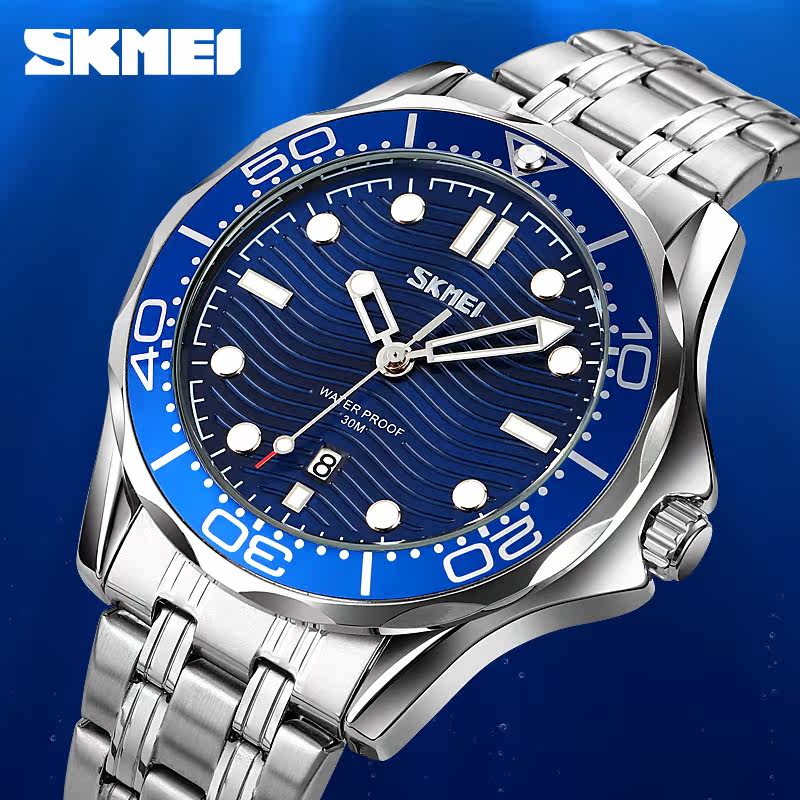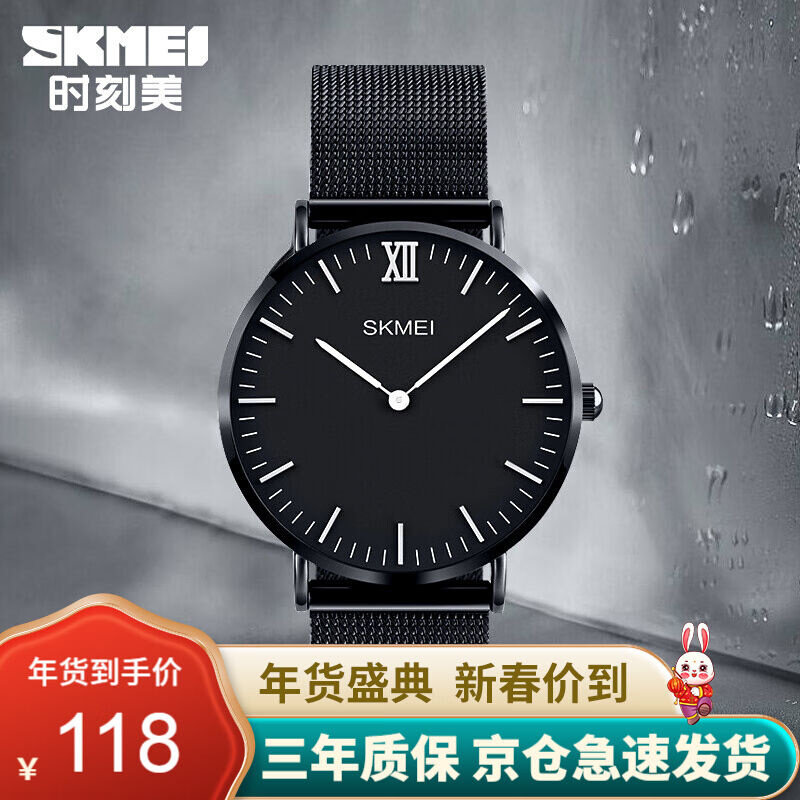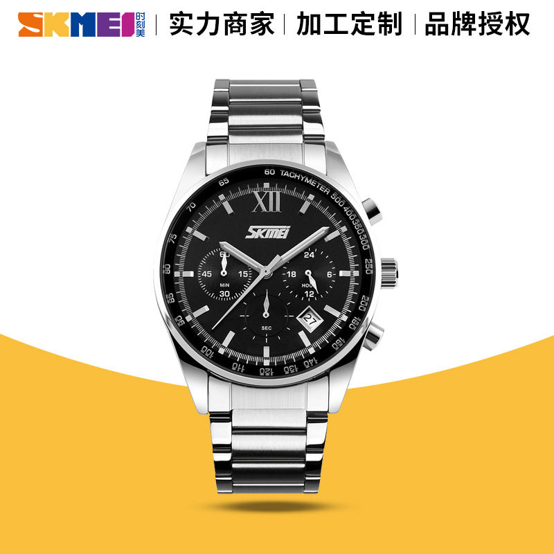 时刻美SKMEI时尚手表男士钢带腕表石英表防水学生时尚男表日历潮