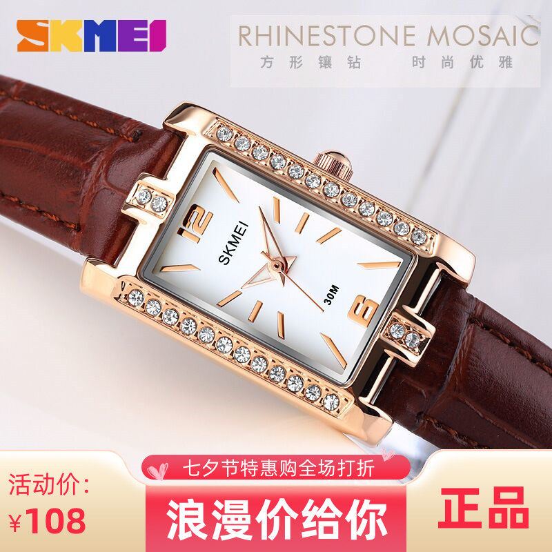 时刻美新款1783轻奢小巧方形女士石英表创意镶钻时尚防水1690手表
