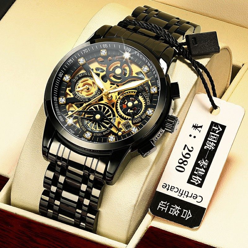 2024新款正品男士手表防水全自动机械表时尚潮流夜光石英镂空男表
