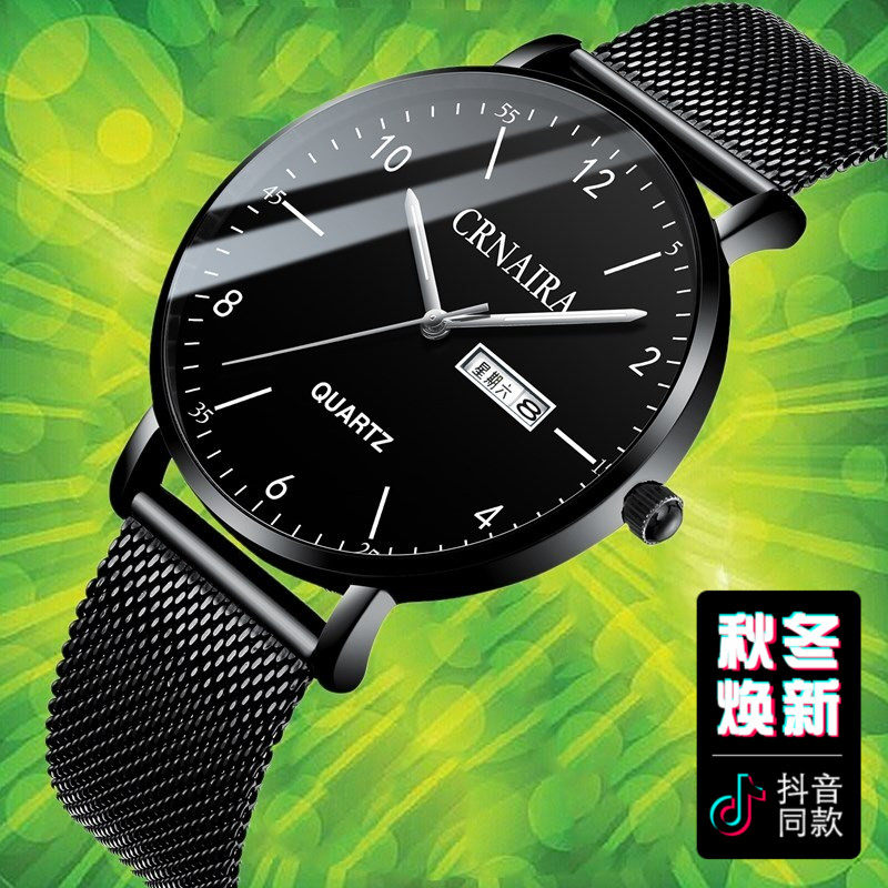 时刻美新款时尚简约男士网带防水石英表抖音网红文艺机械冷酷手表