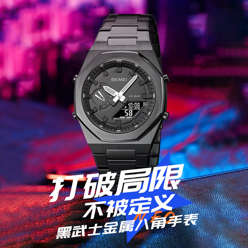 时刻美双显创意个性男款钢带学生石英腕表时尚潮流防水电子手表女