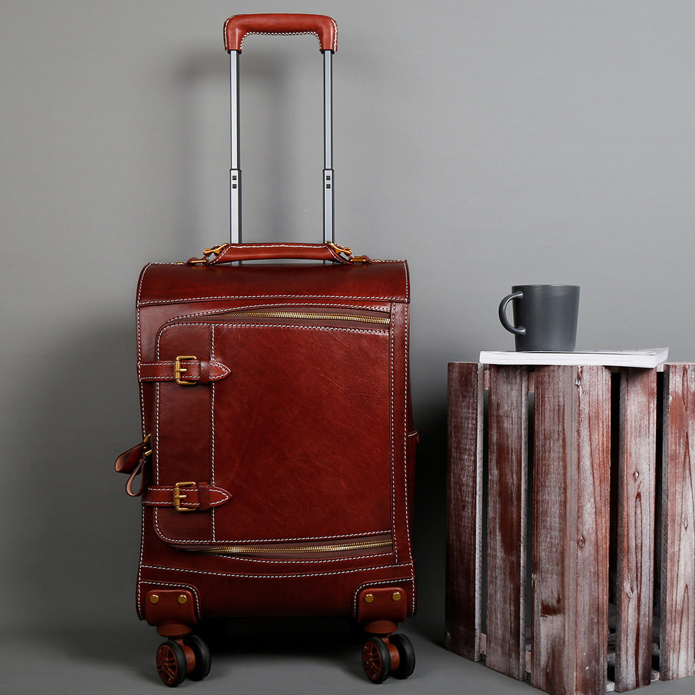 真皮旅行箱20寸复古植鞣皮拉杆箱大容量万向轮休闲旅行手提行李箱