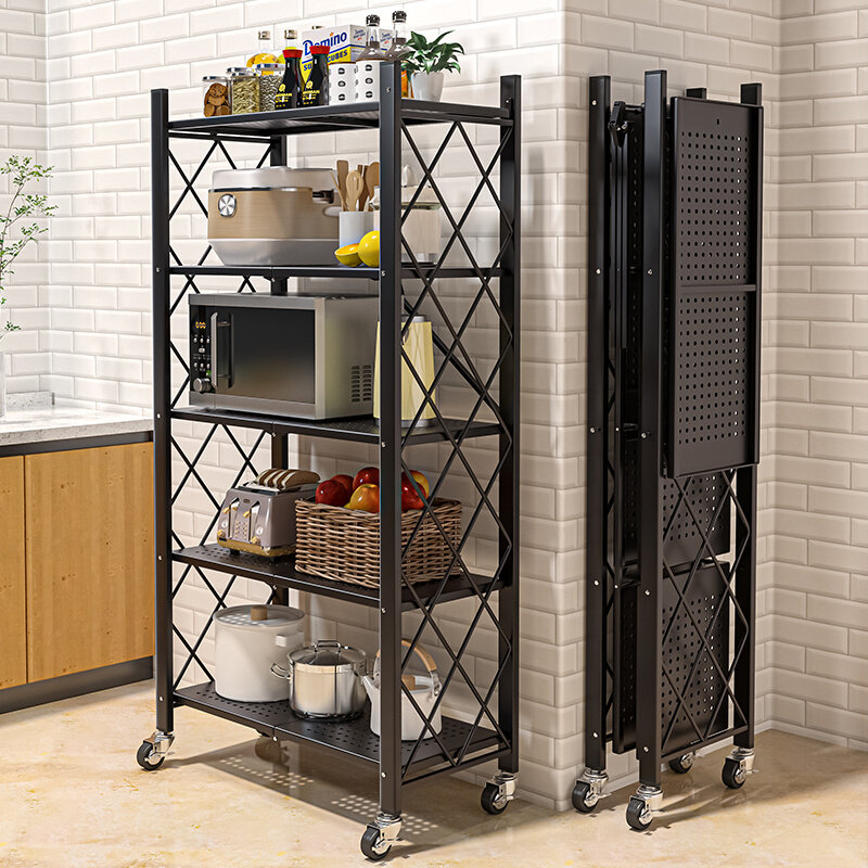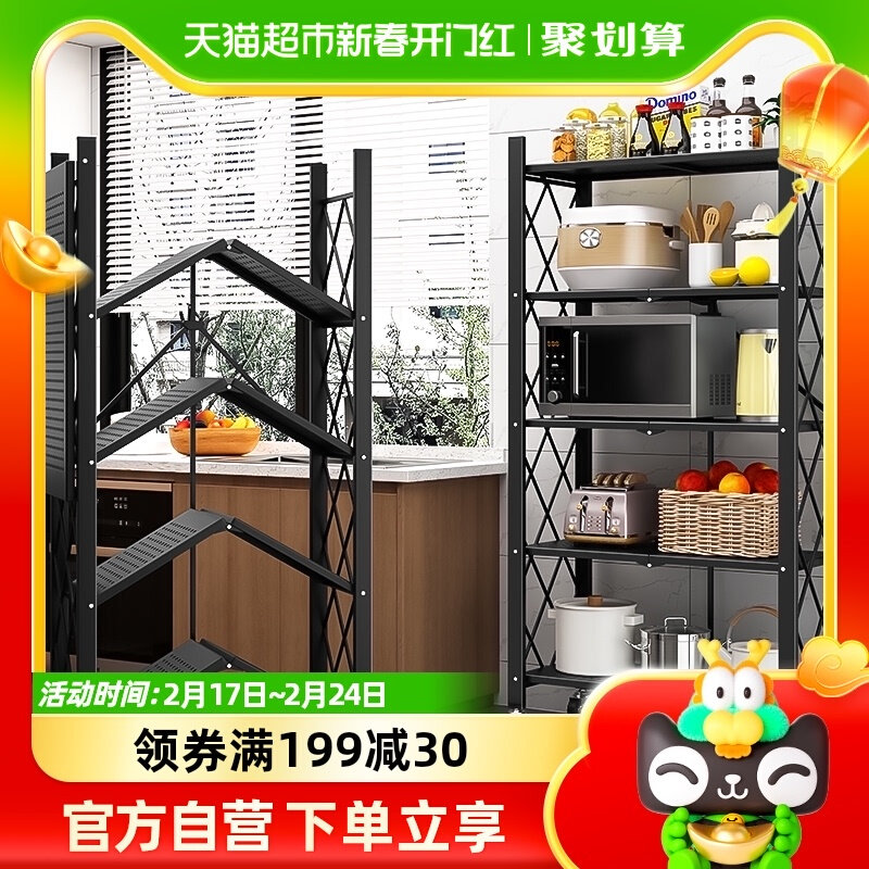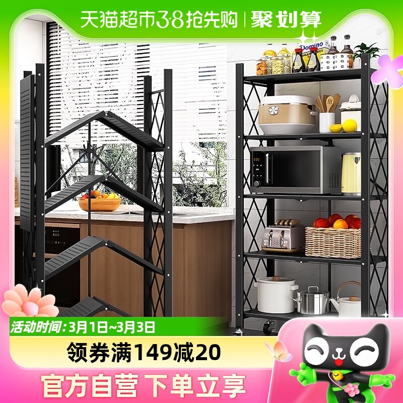 星优厨房置物架折叠免安装微波炉烤箱落地式储物柜多层家用收纳架