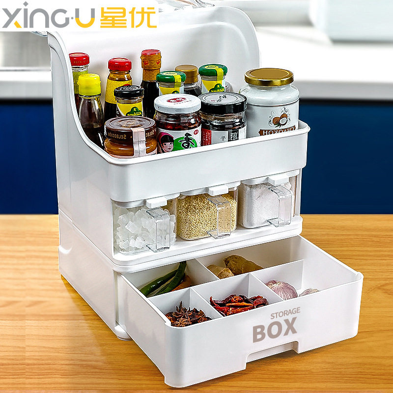 厂家星优多功能调味盒厨房调料用品分层收纳箱透明防尘翻盖便利收