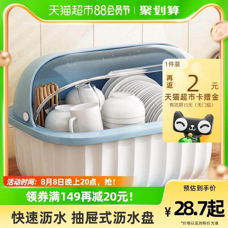 星优厨房碗筷收纳盒碗架收纳沥水碗柜带盖放碗箱餐具家用置物架