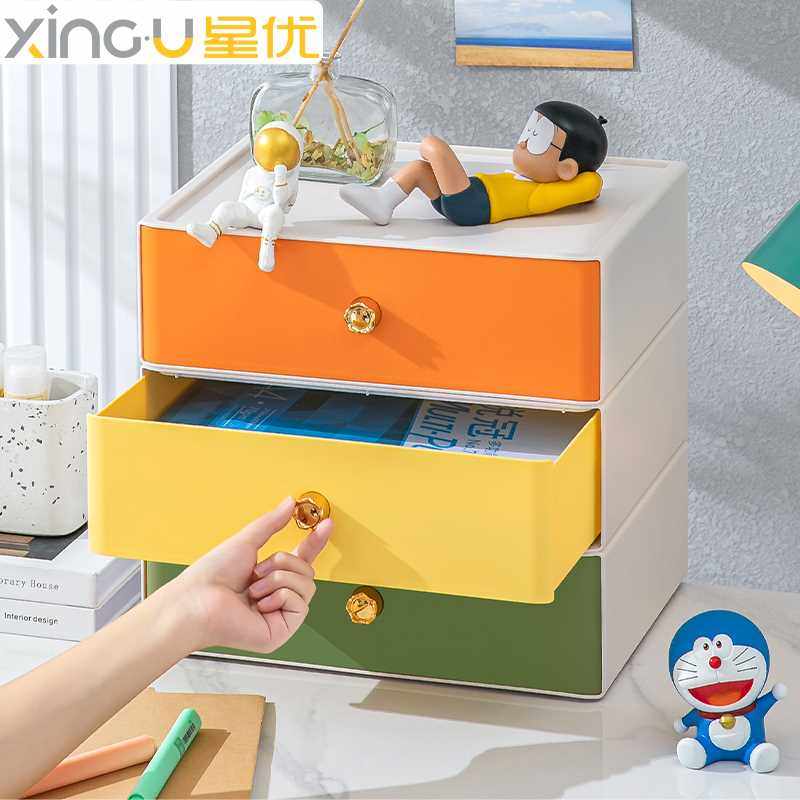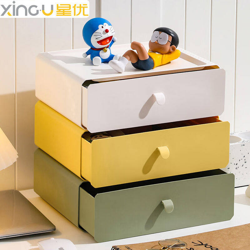 星优办公桌面收纳柜子抽屉式收纳盒桌下文件柜文具用品储物整理箱