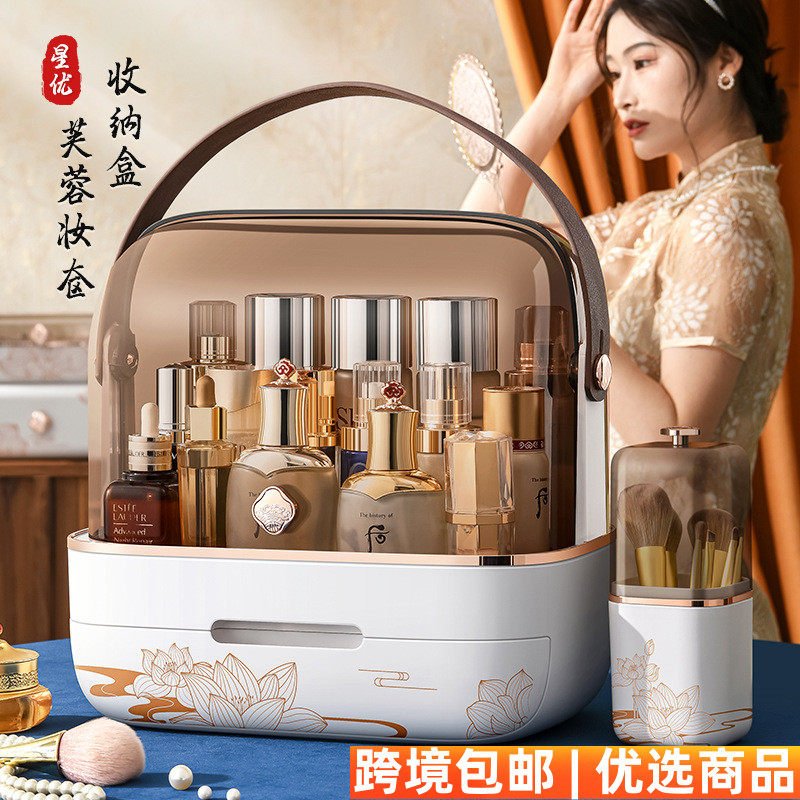 星优化妆品收纳i盒桌面芙蓉妆奁化妆箱新款防尘护肤品梳妆台置物