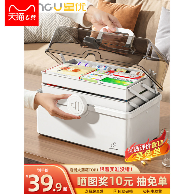 星优大号药箱家庭装大容量医药箱家用药品收纳箱多层特大分类收纳
