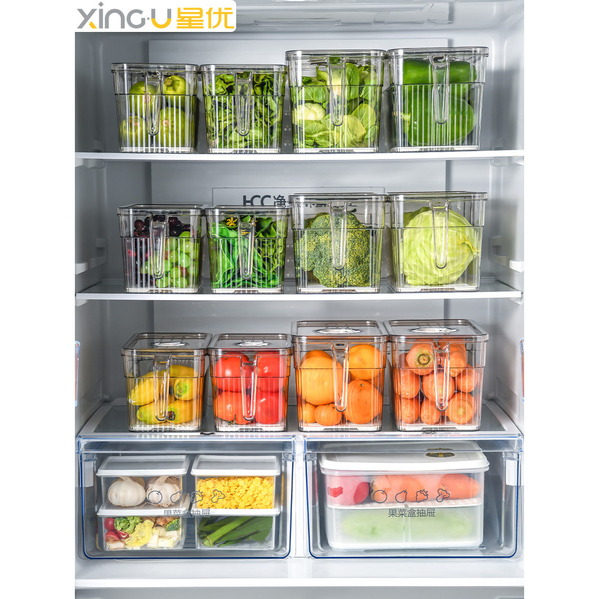 星优4个装大号冰箱保鲜盒食品级厨房蔬菜储物整理收纳盒冷冻专用