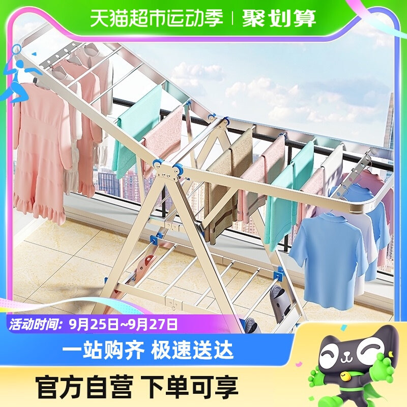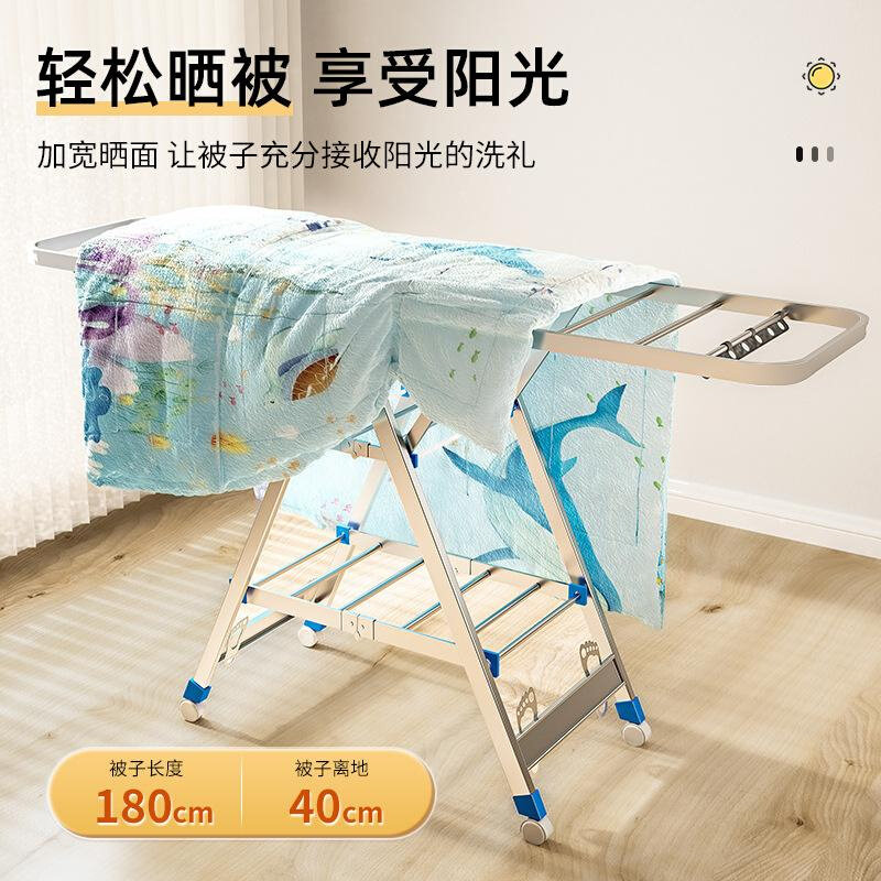 星优不锈钢摺叠晾衣架落地室内阳台凉衣架家用多功能晾衣杆晒被子