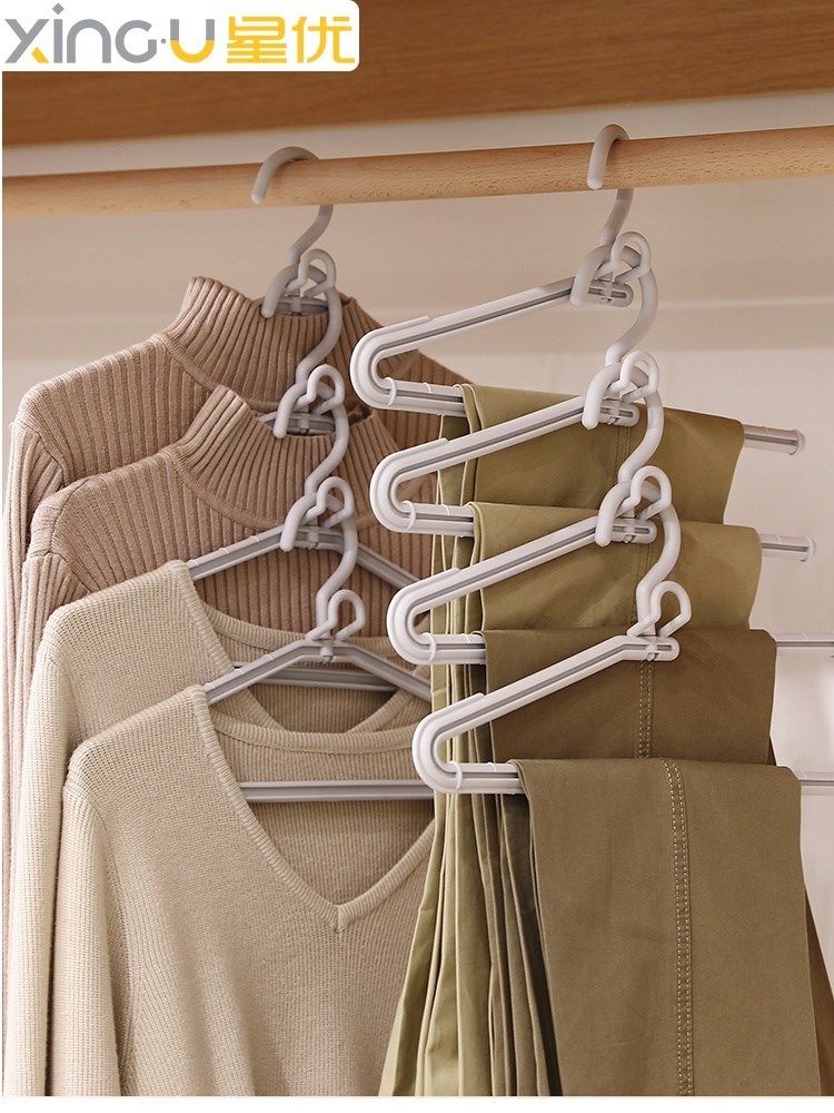 星优多功能无痕晾撑衣服架子裤架收纳家用挂衣晒衣架挂钩挂衣杆