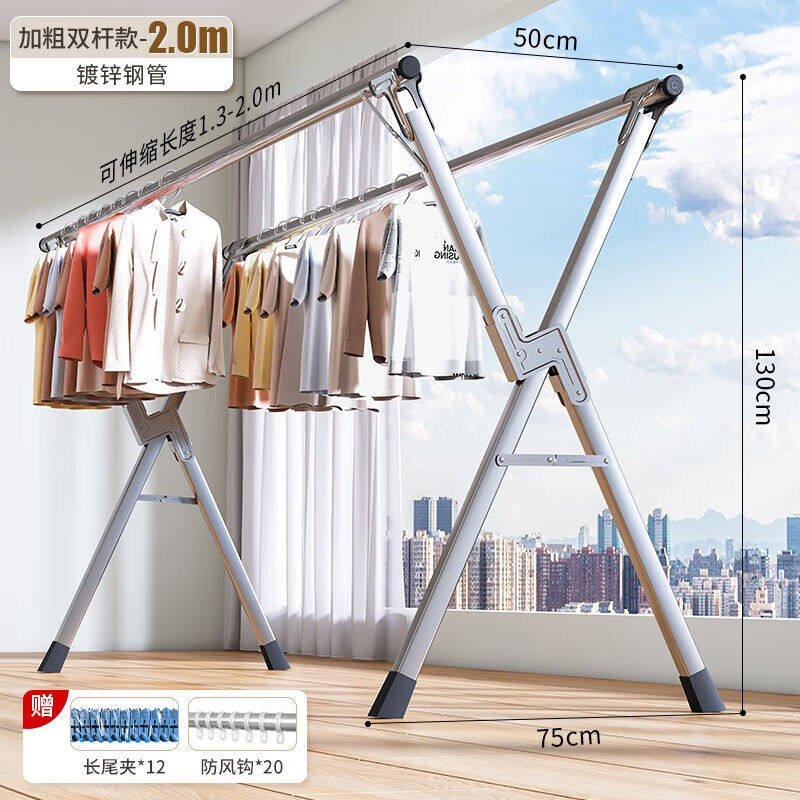 星优不锈钢折叠晾衣架落地室内阳台凉衣架家用多功能晾衣杆晒被子