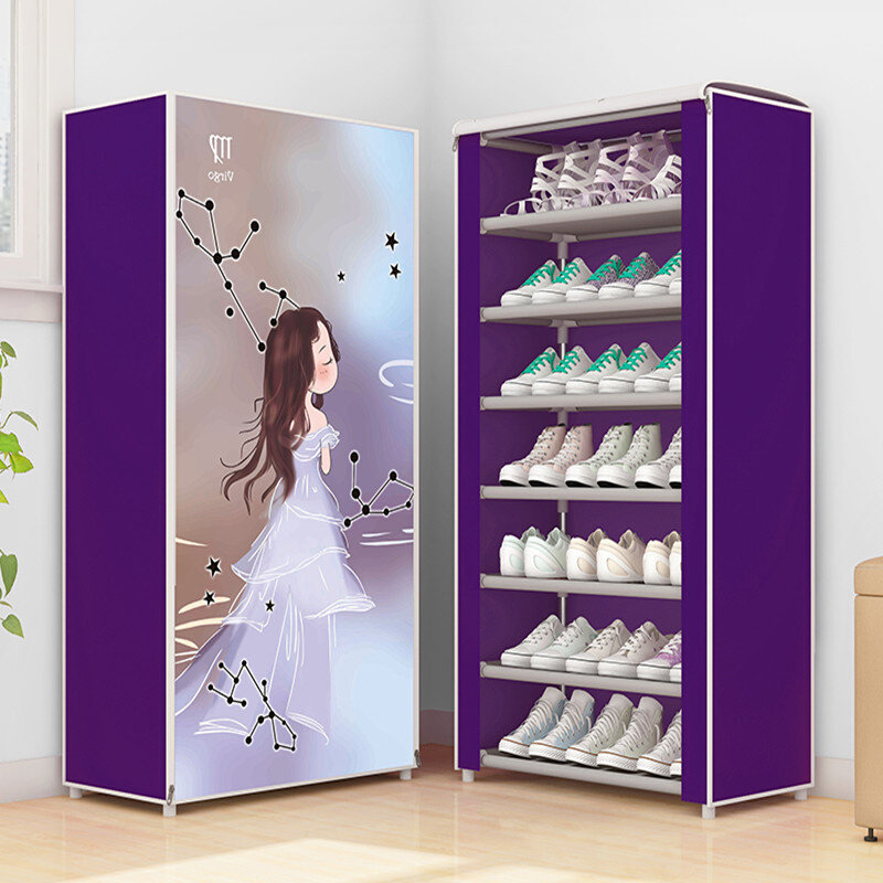 特价经济型带拉链家用防尘不锈钢鞋架子大容量多层宿舍简易布鞋柜