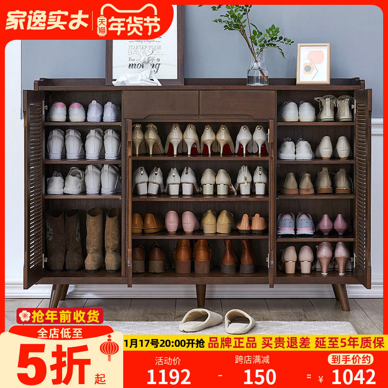 家逸鞋柜家用实木门口玄关柜大容量木质鞋架北欧美式鞋柜收纳柜子