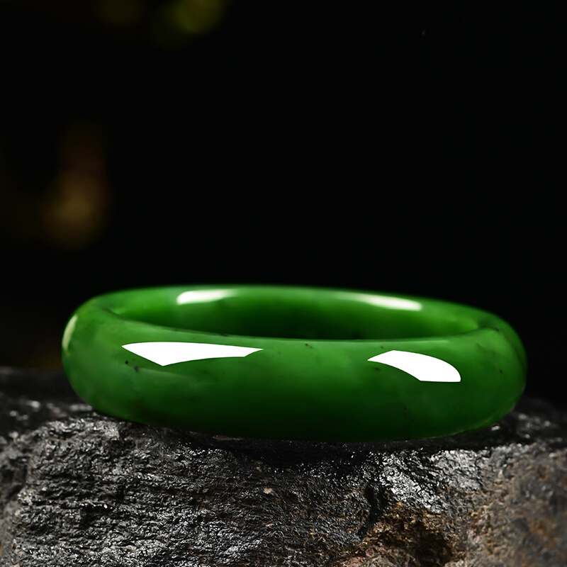 景禾 和田玉碧玉手镯女款菠菜绿玉镯子天然玉石玉器玉镯妈妈圆镯