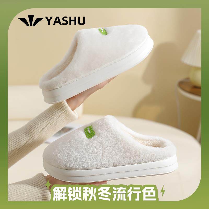 亚束2023新款奶油芝士毛绒棉拖冬天居家保暖防滑软底情侣拖鞋WJ