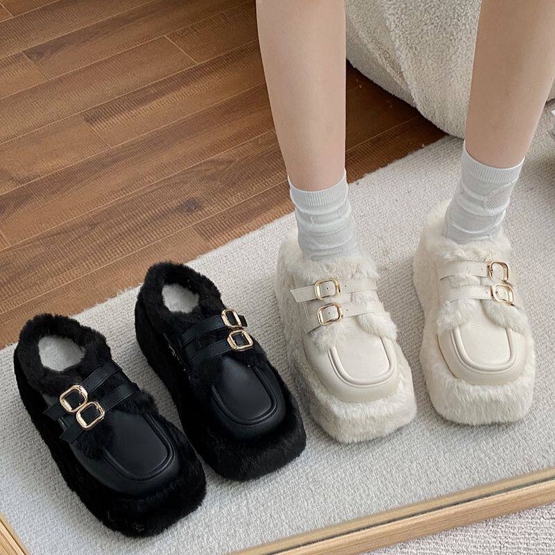 厚底增高毛毛拖鞋女秋冬季外穿2023新款网红超火保暖高级感棉拖鞋
