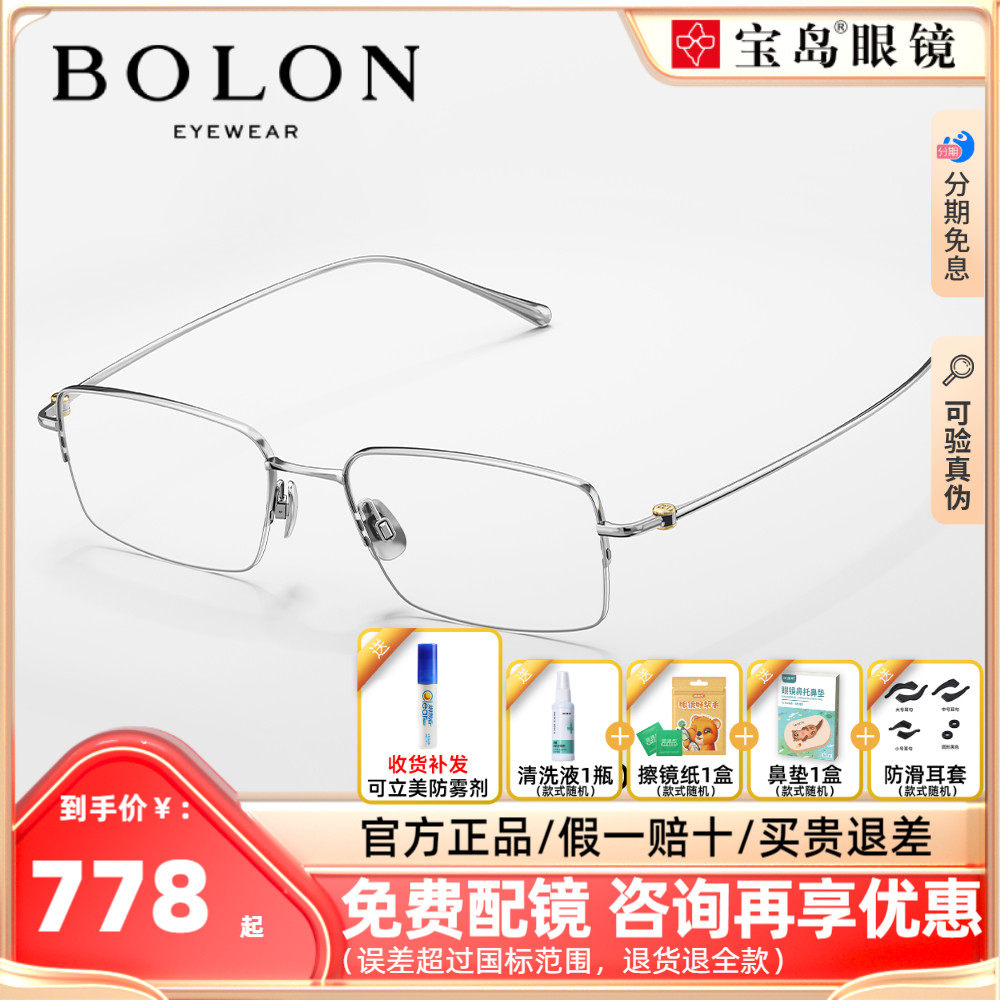 BOLON暴龙近视眼镜新品商务半框镜架男钛金属镜框可配度数 BT1611