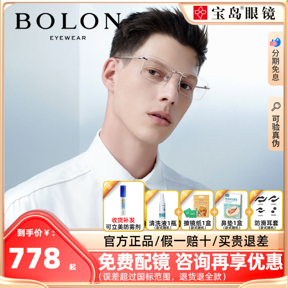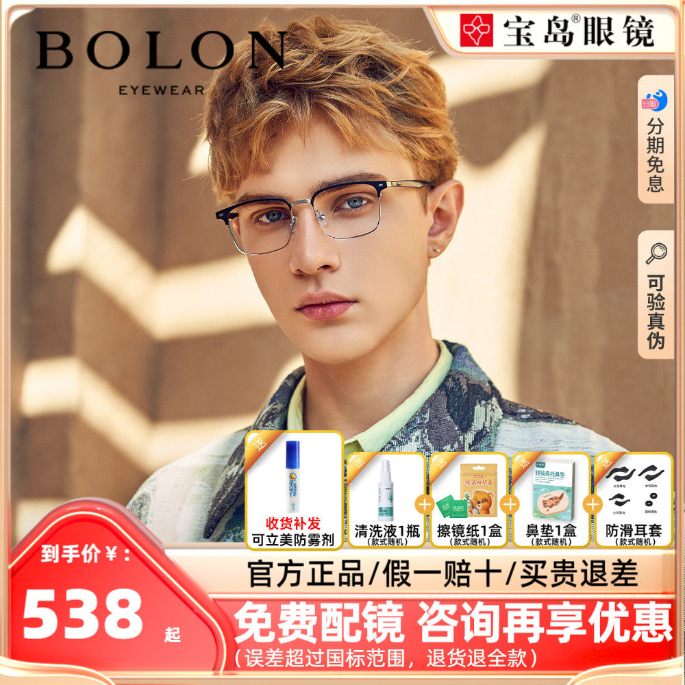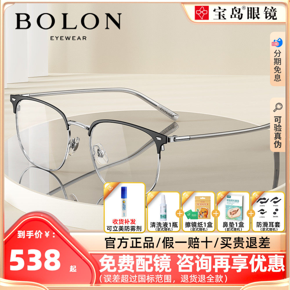 BOLON暴龙近视眼镜框男商务休闲眉框王俊凯同款半框镜架女BJ7130