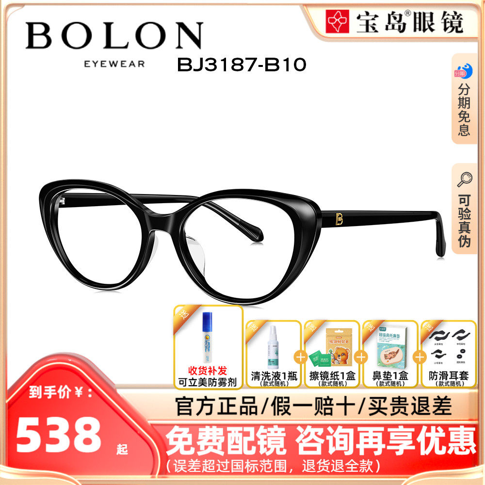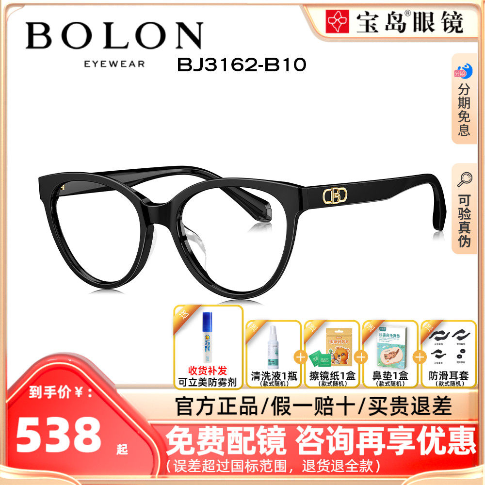 BOLON暴龙眼镜新款板材黑框眼镜架女款猫眼潮近视眼镜框BJ3162