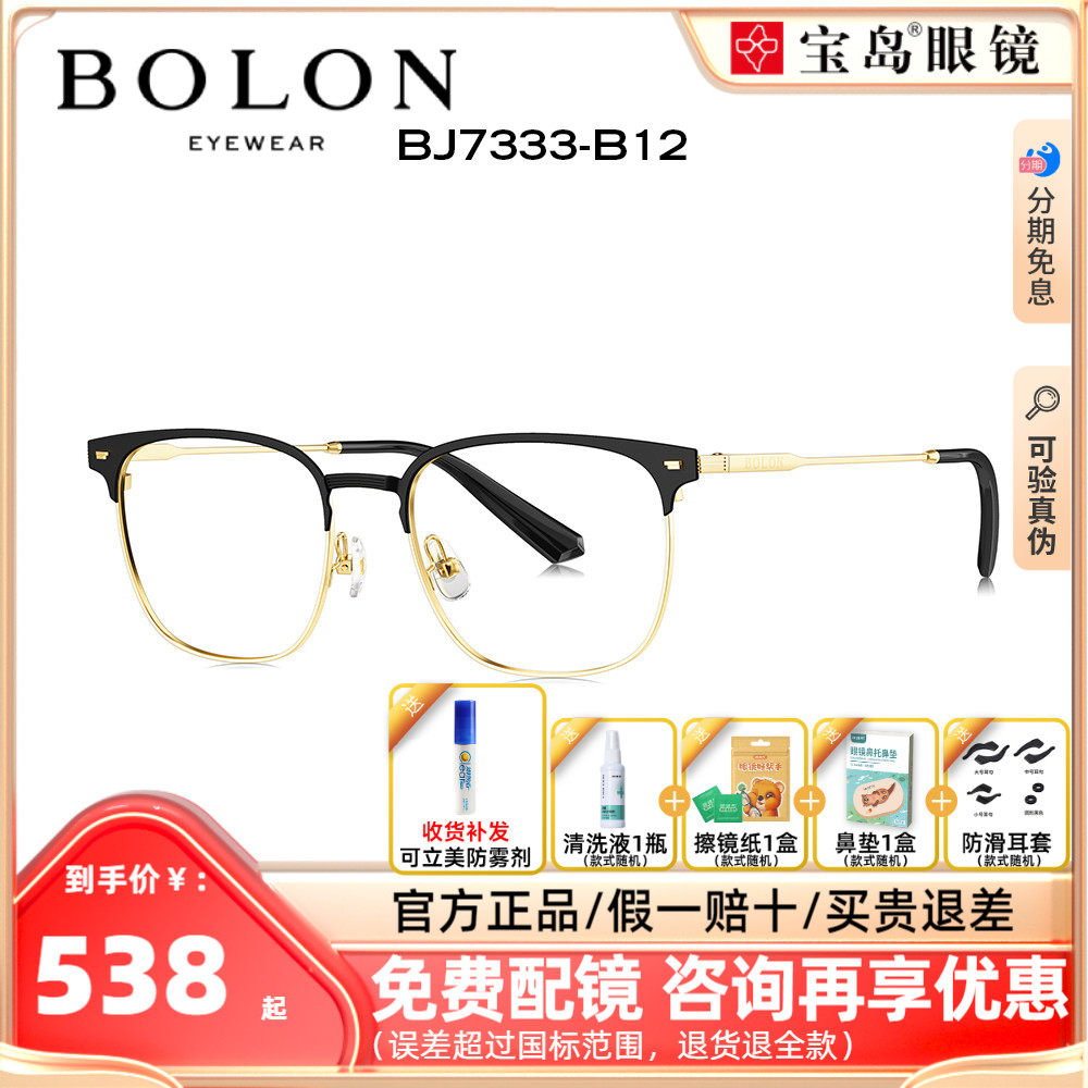 BOLON暴龙眼镜2023新品商务眉框合金光学近视眼镜架男女 BJ7333