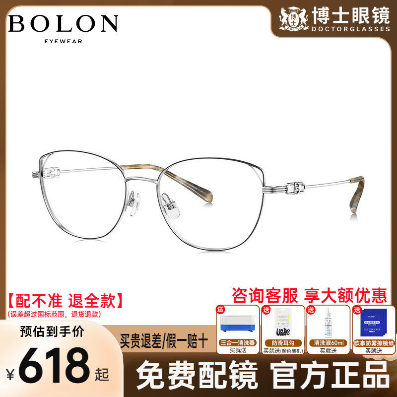 BOLON暴龙眼镜新款时尚猫眼近视眼镜框钛金属男女款镜架BH7009