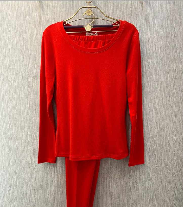 曼妮芬正品女士圆领厚保暖大红本命年保暖秋衣秋裤套装20210531