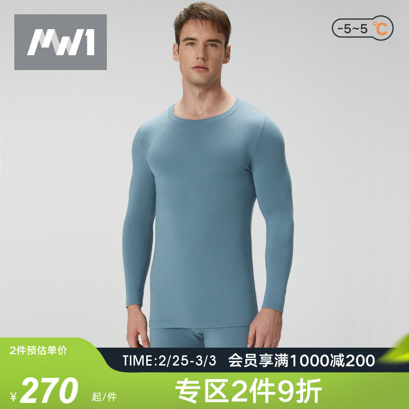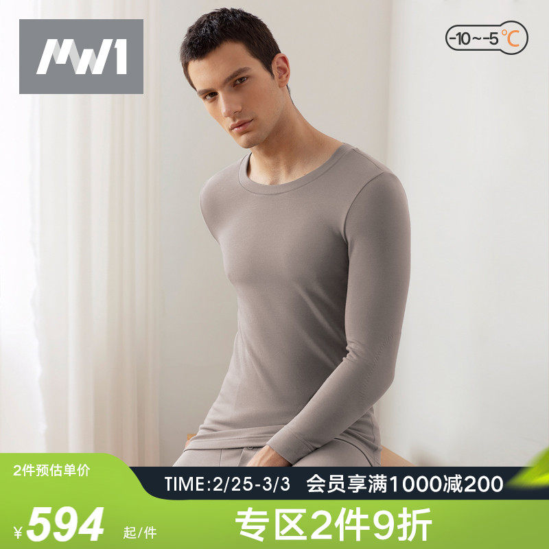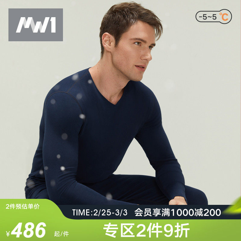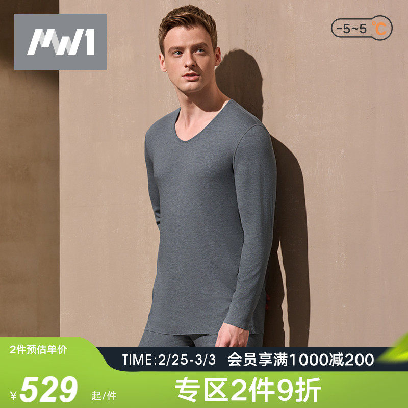 曼妮芬男士MW1秋冬保暖内衣100s无痕棉双面绒感暖衣暖裤长袖长裤