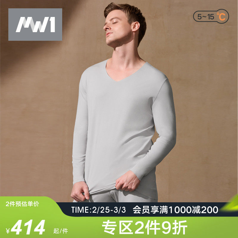 曼妮芬MW1男士真丝羊绒无痕暖衣暖裤V领长袖上衣中腰保暖裤男