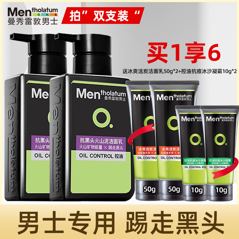 曼秀雷敦男士专用洗面奶控油抗痘深层去黑头角质洁面乳套装正品