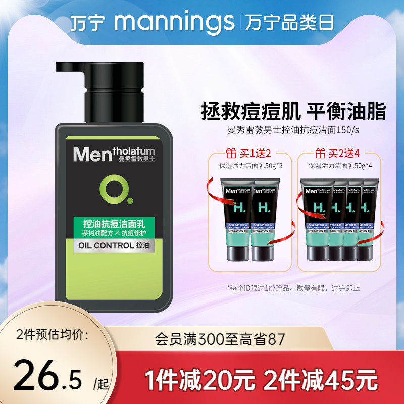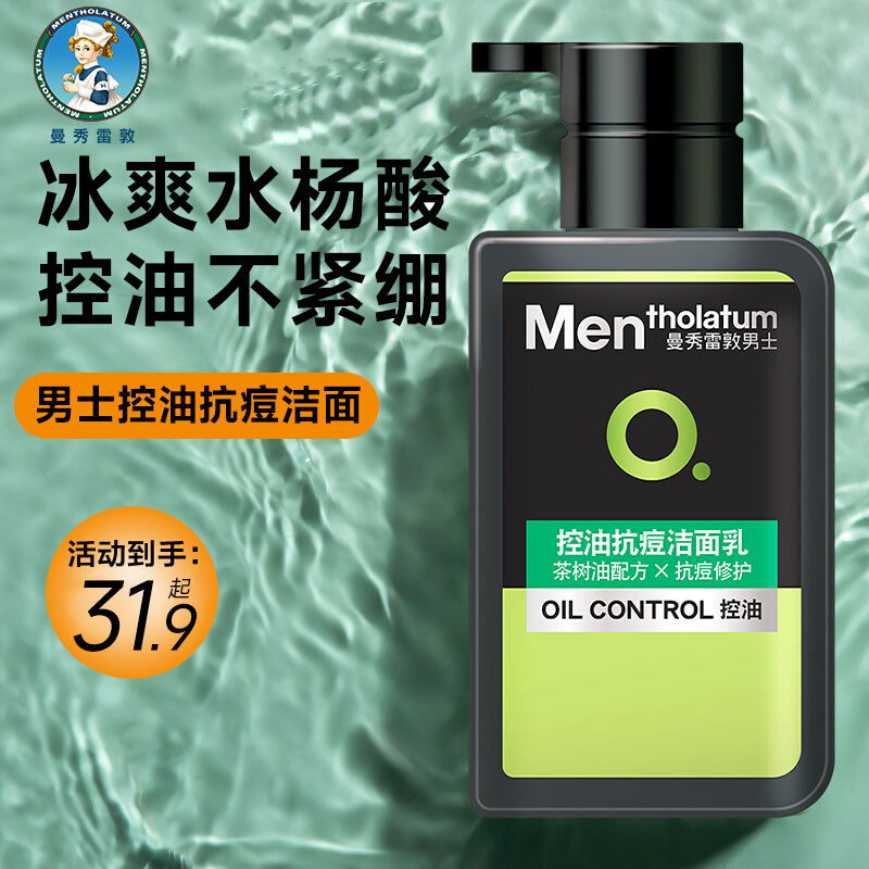 万宁曼秀雷敦抗痘控油男士专用洗面奶洁面乳改善痘肌油光150ml