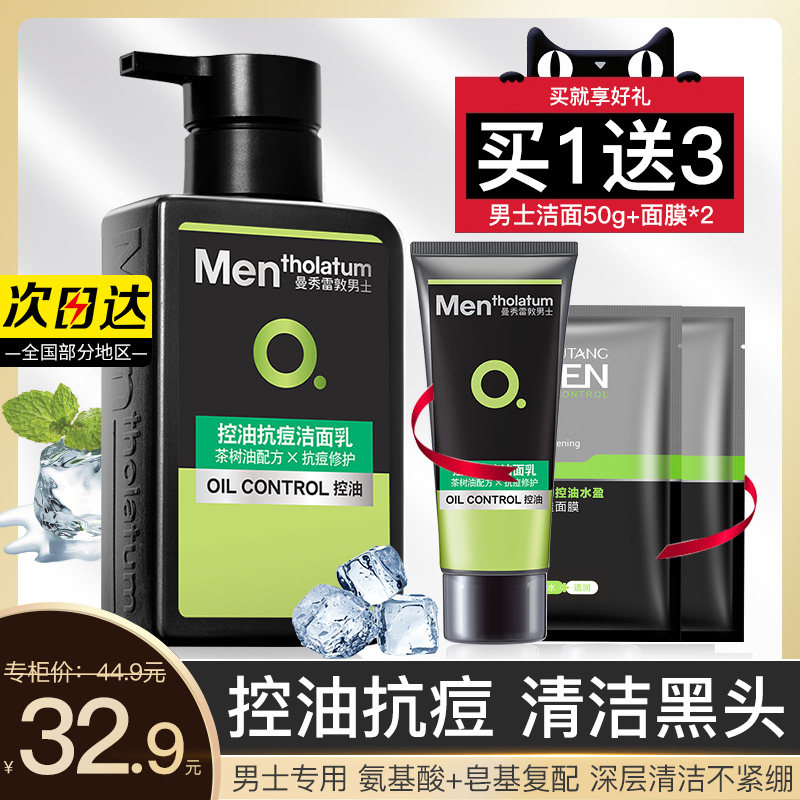 曼秀雷敦洗面奶男士专用控油祛痘男生春夏干皮洁面乳旗舰店套装