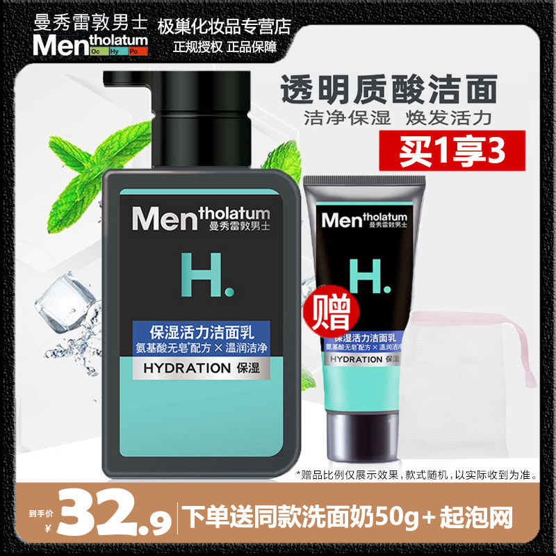 曼秀雷敦男士保湿活力洁面乳洗面奶深层清洁清爽补水保湿不易紧绷