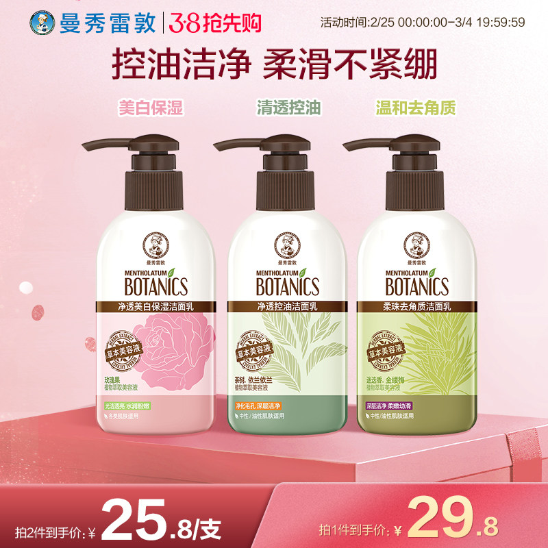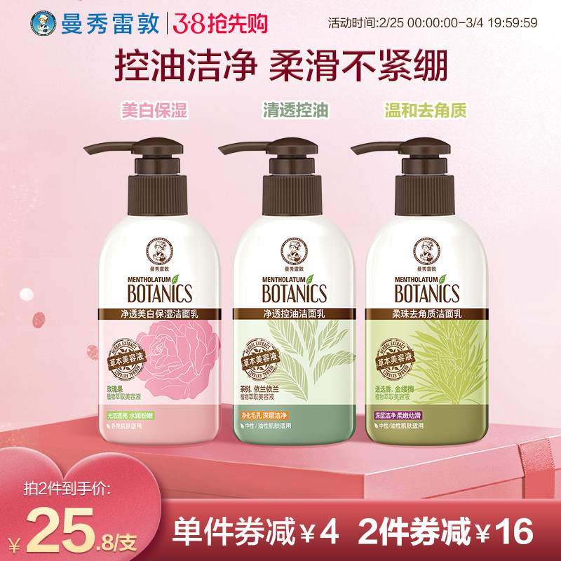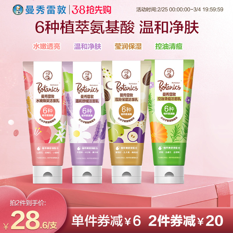 曼秀雷敦洁面乳滢润保湿水嫩焕采温和舒缓控油清痘净肤植萃氨基酸