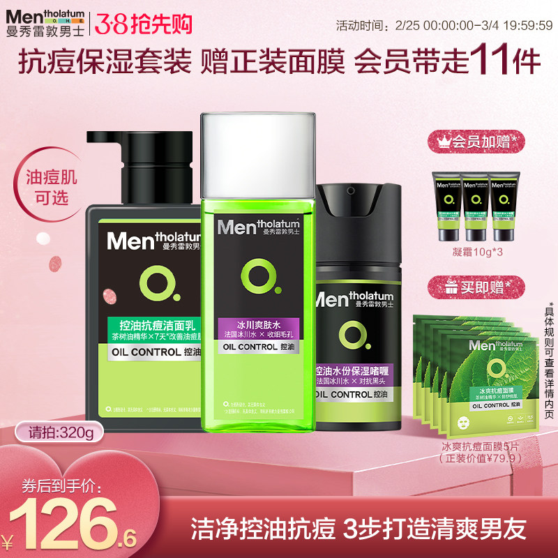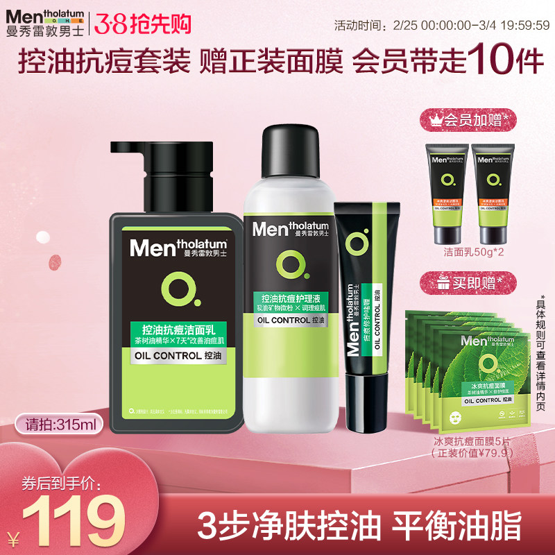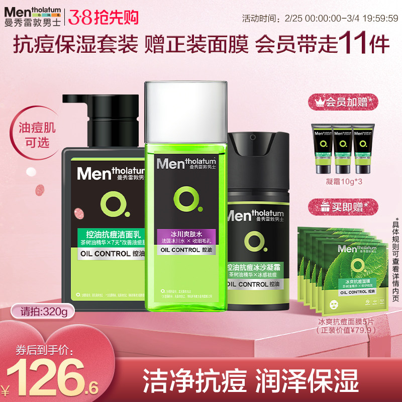 曼秀雷敦抗痘套装男士控油凝霜洁面乳护肤品洗面奶保湿痘肌润肤