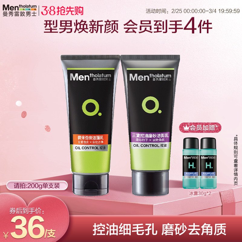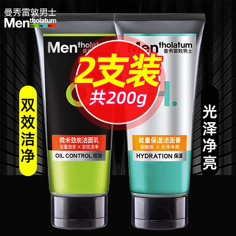 2支曼秀雷敦男士洗面奶控油清爽微米劲炭洁面乳冬学生补水保湿洁
