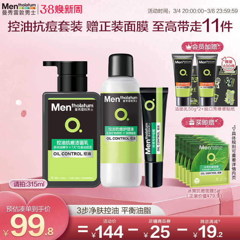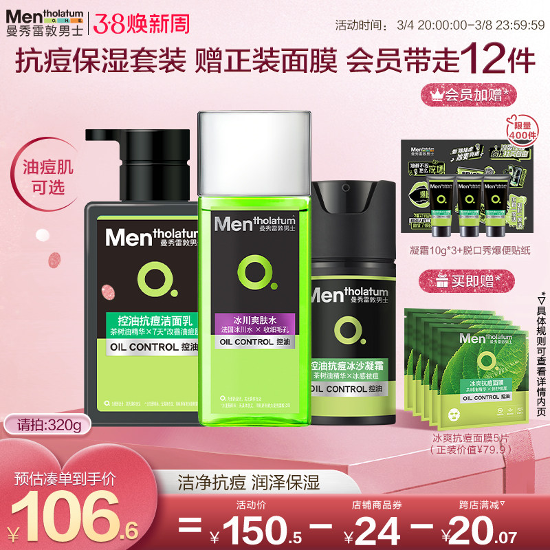 曼秀雷敦抗痘套装男士控油凝霜洁面乳护肤品洗面奶保湿痘肌润肤