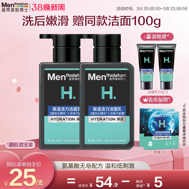 曼秀雷敦男士保湿活力洁面乳洗面奶深层清洁清爽补水保湿不易紧绷