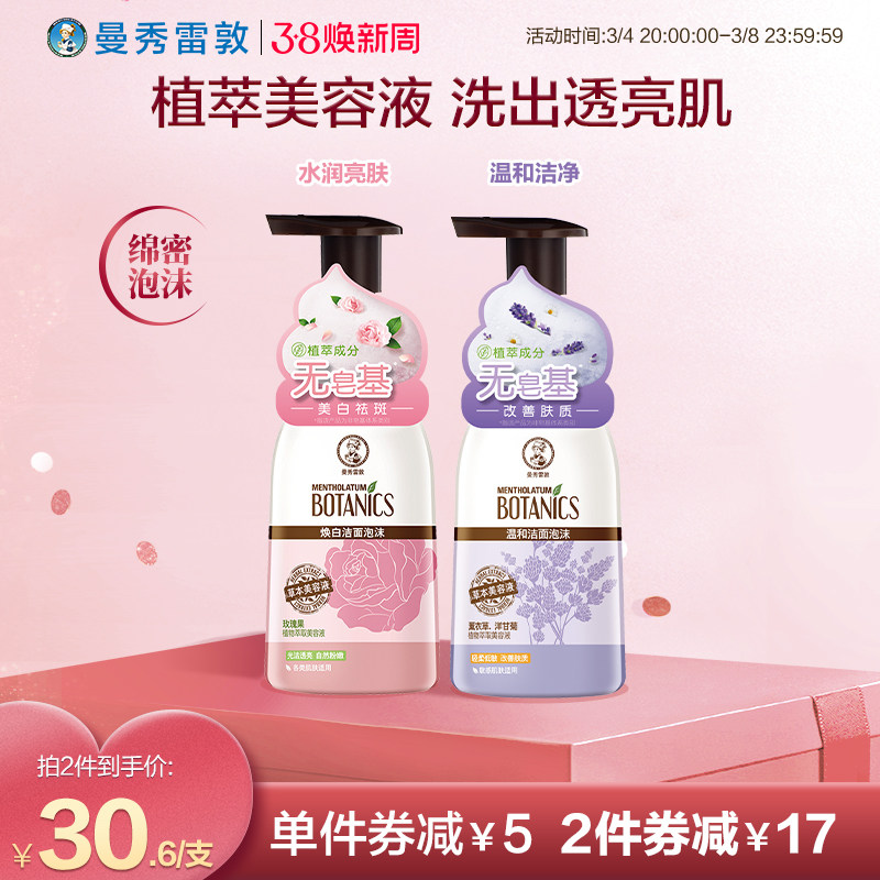 曼秀雷敦氨基酸2瓶洗面奶女男乐肤洁控油迷迭香去痘洁面泡沫慕斯