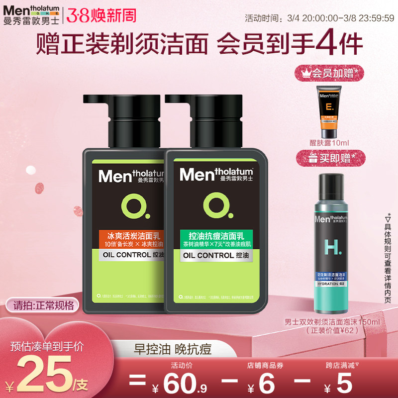 曼秀雷敦洗面奶男士专用控油祛痘男生春夏干皮洁面乳旗舰店套装